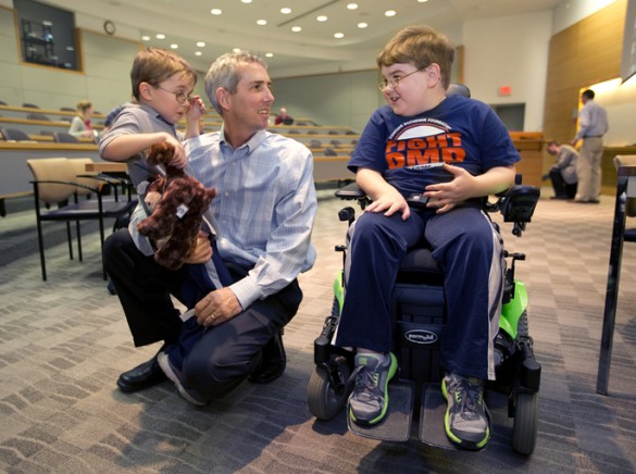 The Marlin’s sons, Jonah, 9, and Emory, 6, did not speak during the event but in a sense they too were professors. Jonah, who lost the ability to walk at age 8, now uses a motorized wheelchair.