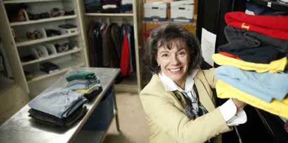 Twice a week, during her lunch breaks, Buchanan tends to the closet — sweeping, dusting and organizing donations, which are not tax-deductible.