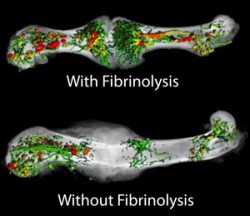 It follows that if fibrin is not efficiently removed, it gets in the way, he said. In the new studies, the team demonstrated that mice missing the factor that clears fibrin had impaired vascularization and bone union. Genetic manipulations to deplete fibrinogen in these mice restored normal fracture repair.