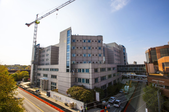 The first of two cranes is in place on the corner of Children’s Way and Medical Center Drive as construction gets underway on the four-floor expansion of Monroe Carell Jr. Children’s Hospital at Vanderbilt. Expected to be completed in 30 months, all four floors of new construction will add 160,000 square feet of additional space atop the hospital’s existing structure, bringing Children’s Hospital’s total footprint to more than 1 million square feet. The facility’s expansion is being supported by the “Growing to New Heights” campaign, a three-year, $40 million fundraising effort that will help cover the total construction cost of more than $100 million.