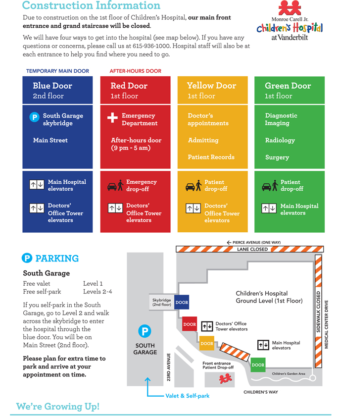 For more information on closures and other impacts throughout construction, please continue to look for updates in MyVUMC.