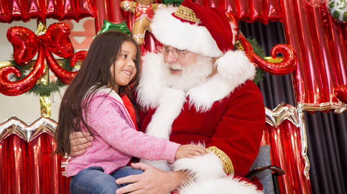 Santa talks with Angelyn Portillo, 6, during a recent daylong visit with patients and families at Monroe Carell Jr. Children’s Hospital at Vanderbilt.
