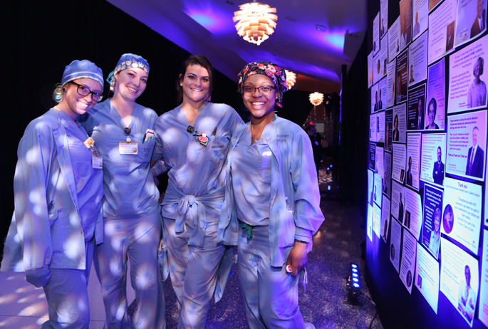 From left, Perioperative Services’ Jessica Cooper, RN, Lauren Huffines, RN, Emily Ellerbeck, CST, and Chawntia Johnson, RN, pose for a photo at last week’s Epic thank you event in Langford Autitorium. The event featured photos and videos taken during Go Live for eStar and served as an opportunity to celebrate employees’ dedication and commitment to the system’s successful launch.