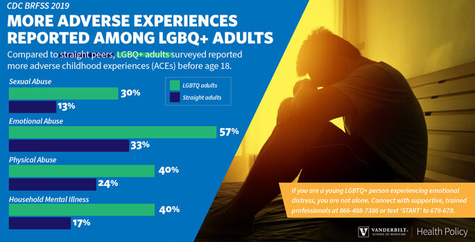 A new study led by researchers at Vanderbilt found that 83% of lesbian, gay, bisexual and queer (LGBQ) individuals reported going through adverse childhood experiences such as sexual and emotional abuse, and worse mental health as adults when compared to their heterosexual peers.