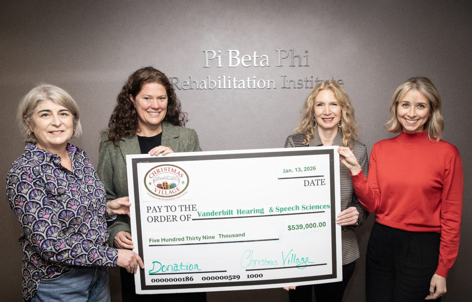 Event organizers and Vanderbilt Bill Wilkerson Center staff gathered recently to celebrate the success of this year’s Christmas Village. Created in 1961 to increase the financial contributions to the Bill Wilkerson Hearing and Speech Center, Christmas Village is one of the oldest charitable events in Nashville, supported and run entirely by volunteers from the Nashville Pi Beta Phi Alumnae Club. This year, the four-day shopping extravaganza raised $484,750.