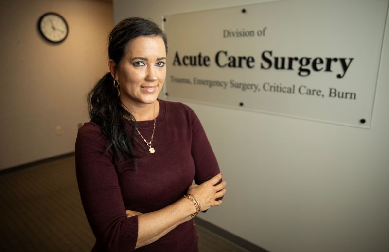 Gaye Smith poses for a photo in the Critical Care Tower atrium at Vanderbilt University Medical Center on Friday, July 28, 2023 in Nashville, Tennessee.