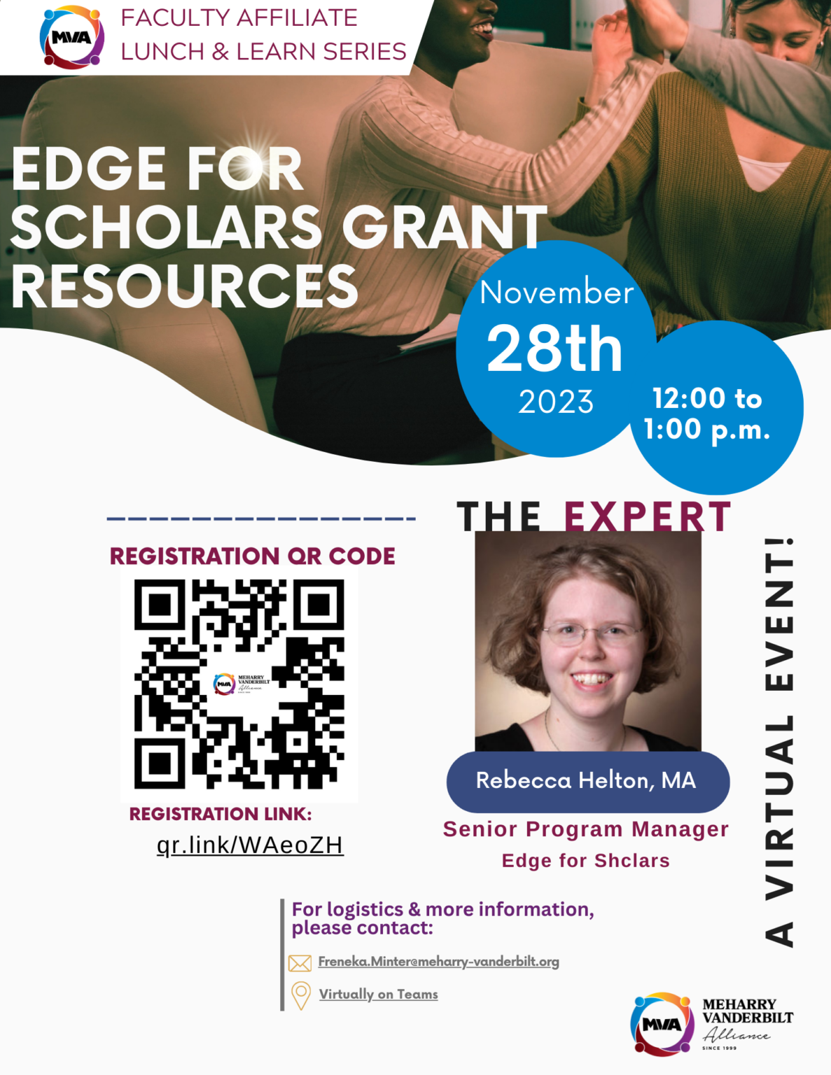 November 14, 2023 Meharry-Vanderbilt Alliance Lunch and Learn series presents “Edge for Scholars Grant Resources,” Nov. 28 By VUMC News and Communications