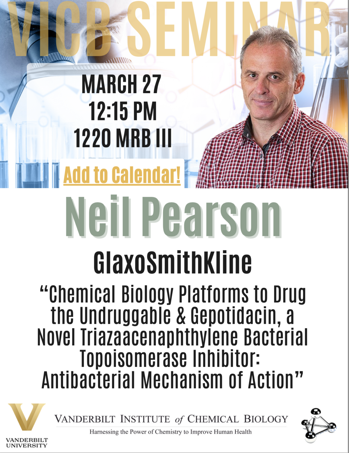 March 14, 2024 Institute of Chemical Biology seminar with GlaxoSmithKline’s Neil Pearson is March 27