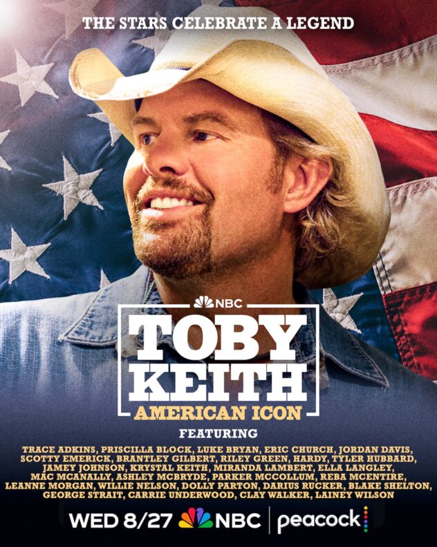 NBC has announced that it will rebroadcast the tribute concert, “Toby Keith: American Icon,” on Wednesday, Aug. 27, at 8 p.m. CDT.
