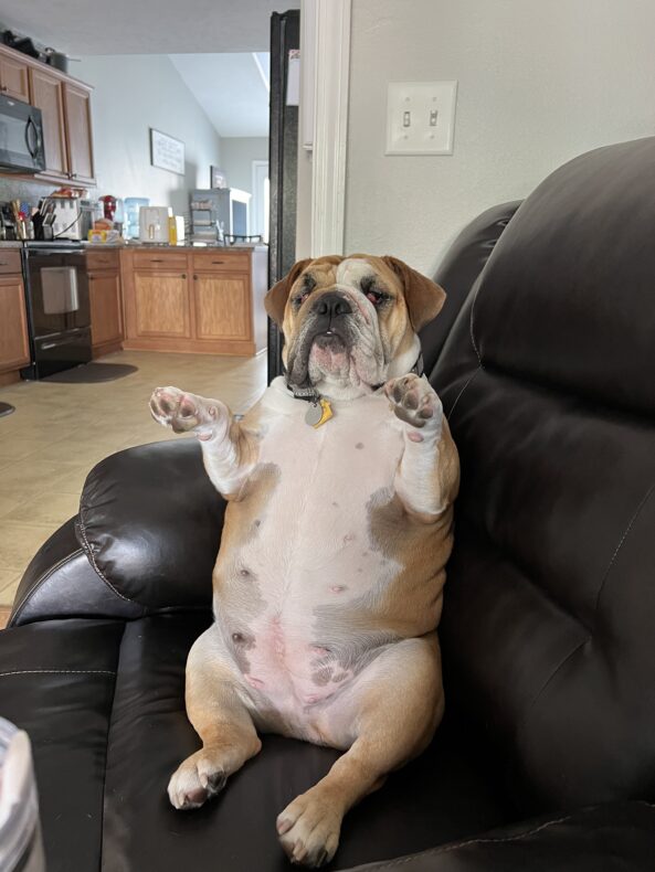 Today’s Dog of the Day is Biscuit, submitted by Melissa Okey of the Center for Women’s Health. “Biscuit loves to sit on her butt just as a human would. She just doesn’t know what to do with her hands when she does.”