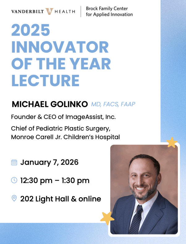 December 9, 2025 Brock Family Center for Applied Innovation hosts lecture to celebrate Michael Golinko, one of its 2025 Innovators of the Year, Jan. 7, 2026