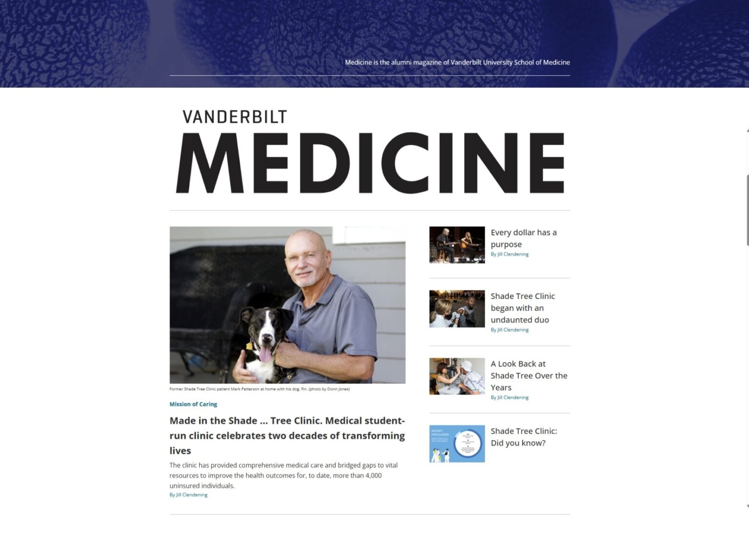 Vanderbilt Medicine, the alumni magazine of Vanderbilt University School of Medicine, highlights inspiring work and keeps VUSM graduates connected.