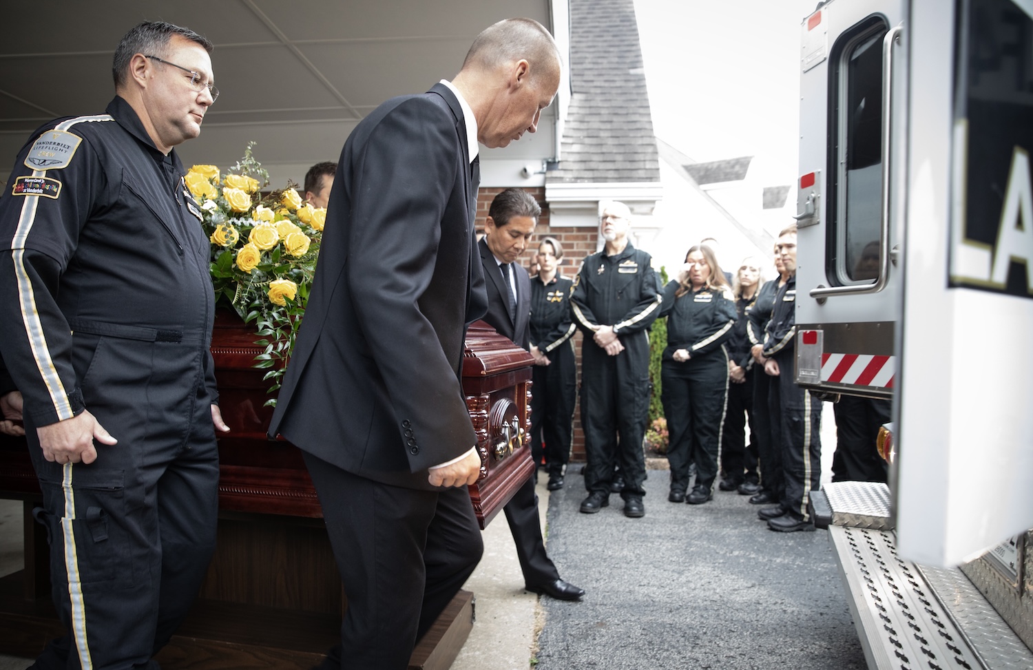 The day began with an honor walk at 8 a.m. as a LifeFlight ambulance and crew departed from Williamson Memorial Funeral Home in Franklin and proceeded north on Columbia Avenue to Rolling Hills Community Church. A private visitation and church service was held at the church. An “in line of service” honor ceremony with flyover took place outside Rolling Hills Community Church from noon to 12:45 p.m.