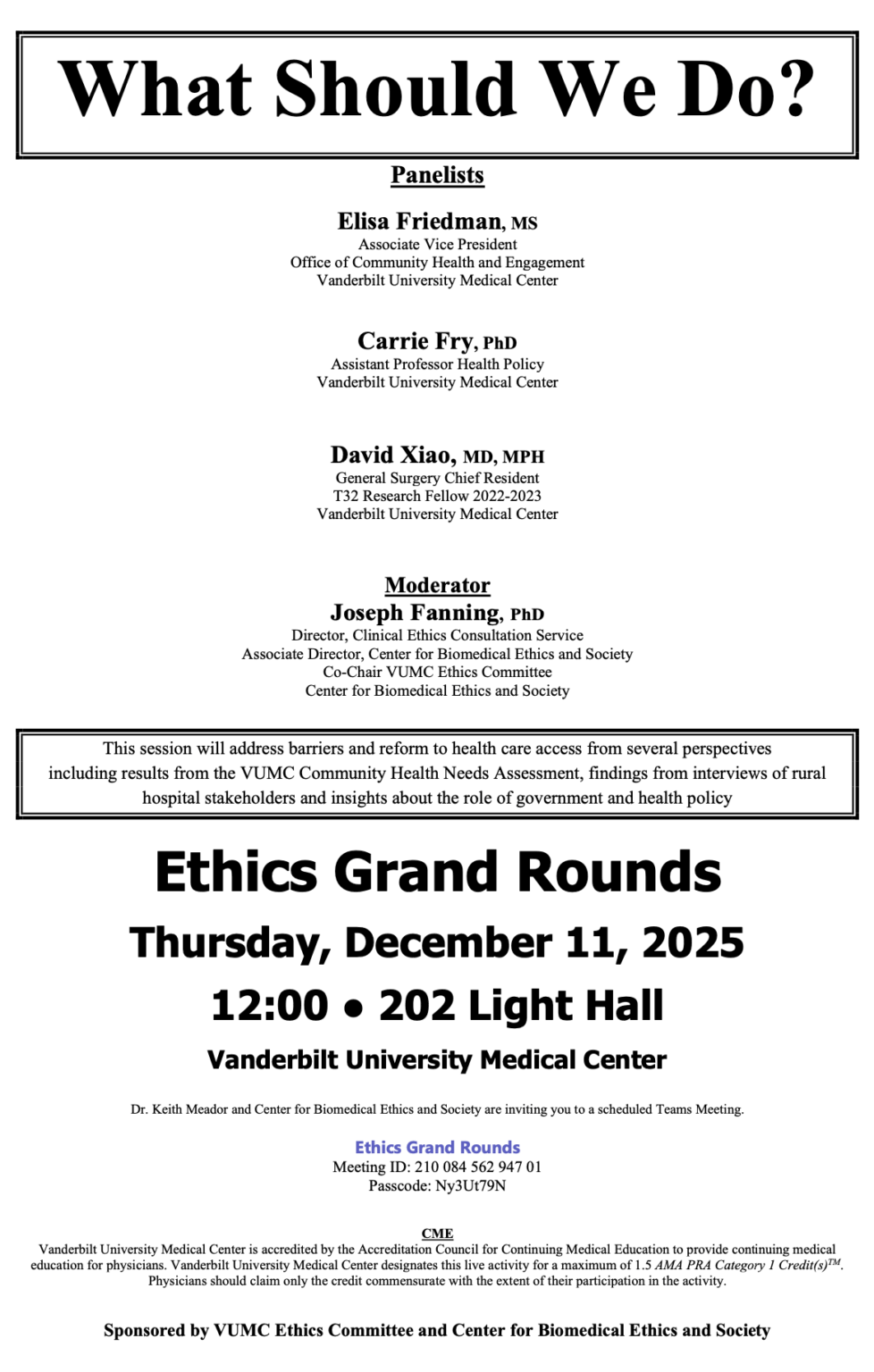 Please contact Denise Lillard at denise.lillard@vumc.org for more information regarding teams link.