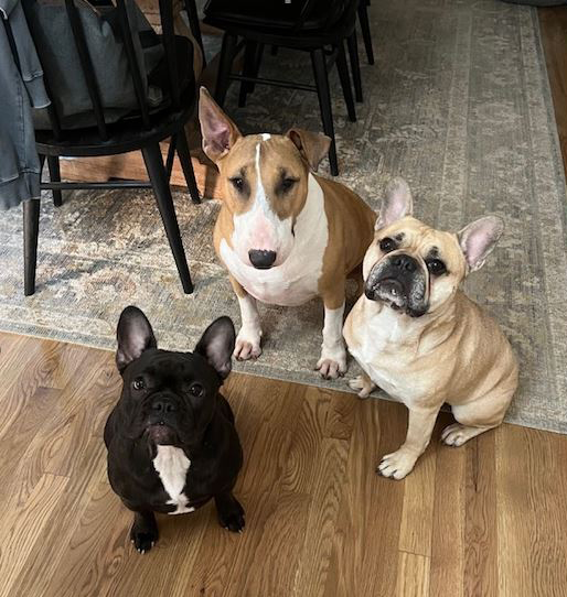 Today’s additional trio of Dogs of the Day are Champ, Lola and Kermit, submitted by Jenna Rodriguez of the Children’s Heart Program. “My trio! Champ, the bull terrier loves to play with his tire swing and sit directly on your toes making sure he’s extra close. Lola and Kermit are our Frenchies. They love to snort, protect and cuddle with anyone as long as you know they are boss!”