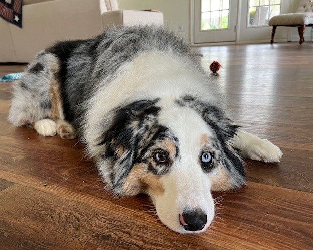 Today’s first Dog of the Day is Momo, submitted by Ginger DeBellis of the Vanderbilt Vaccine Center. “Momo is a sweet and super smart blue merle Australian shepard who loves learning new tricks, neighbor watching and snuggles.“