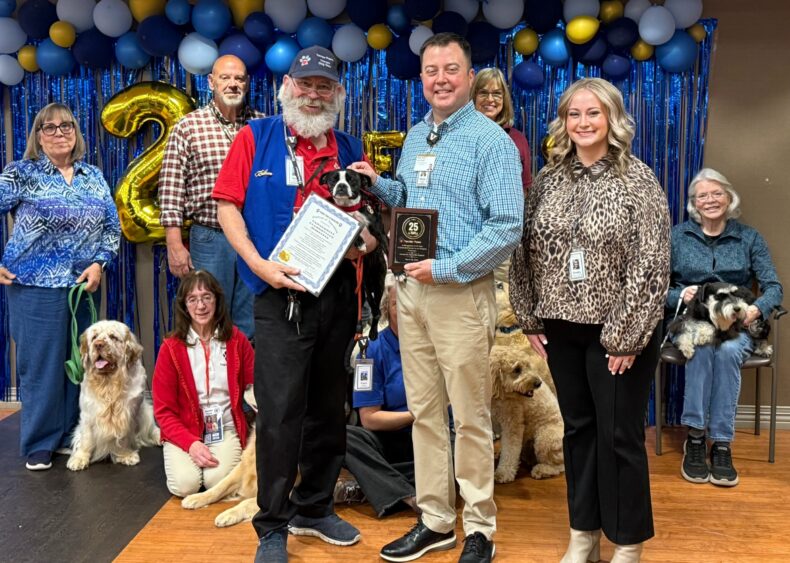 “This partnership represents the very best of what community and compassionate care look like,” said Banks. “For 25 years, our volunteers and their dogs have made a difference in the lives of patients, families and staff, and we are honored to continue growing this partnership.”