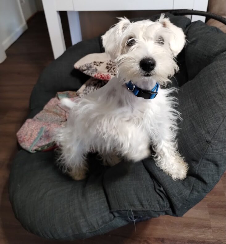 Today’s first Dog of the Day is Bugs, submitted by Dawn Bardwell of Clinical Supply. “Bugs is a miniature schnauzer and the sweetest cuddle baby!”