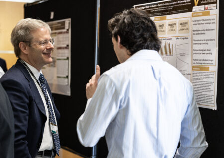 Following Wargo’s talk, research posters from Vanderbilt Health investigators at every level — medical students, residents, fellows and faculty — were displayed in the Langford Auditorium lobby highlighting investigations in basic and translational science, clinical outcomes, and quality improvement.