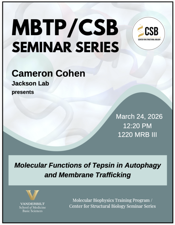 Molecular Biophysics Training Program/Center for Structural Biology seminar with Cameron Cohen to be March 24